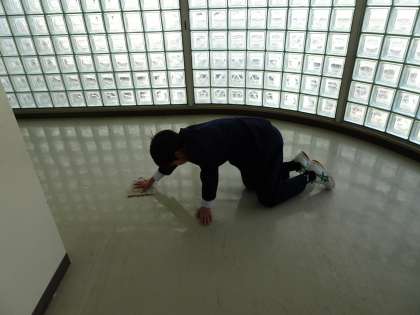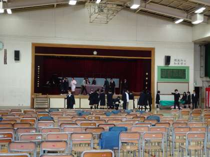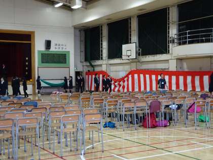 3年生が式場の準備をしています。2年生は清掃をがんばっています。みんな積極的に取り組んでいました。(遠藤)