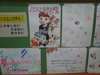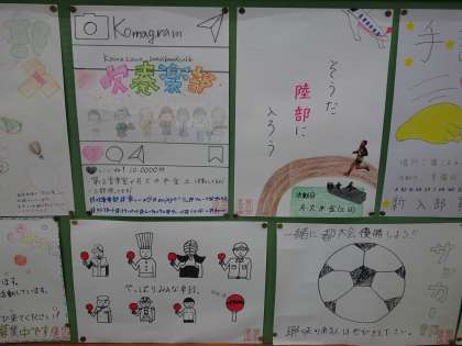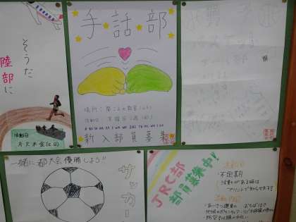 1年生の昇降口の掲示板に部活動の勧誘ポスターが掲示されています。このポスターや4/11(火)に行われる部活動オリエンテーションを見て、3年間続けることができる部活動を決めましょう。(遠藤)