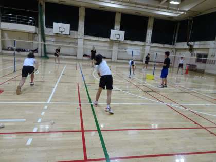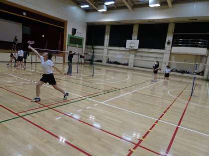 バドミントン部が体育館で活動中です。2年生はスマッシュの練習、3年生はクリアの練習をしていました。(遠藤)