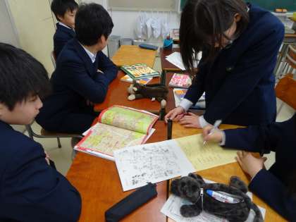 3年生の学活の様子です。修学旅行の班行動のコース決めをしていました。交通機関を上手く使い、なるべく多くの場所を見学できるようにコースを決めましょう。(遠藤)