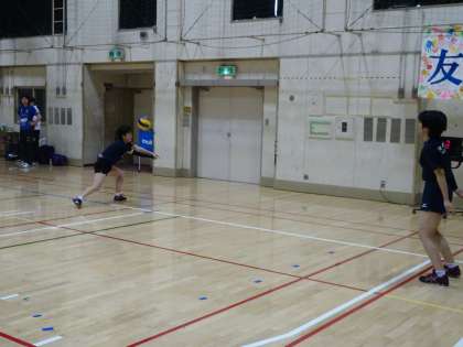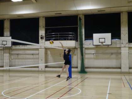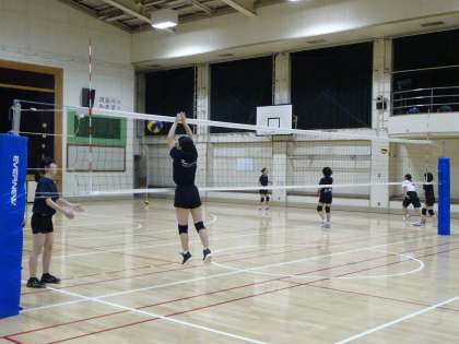 体育館で女子バレーボール部が活動中です。スパイク、ブロック、レシーブ、それぞれの練習をしていました。(遠藤)