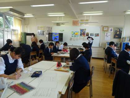 3年生の美術では組み合わせ模写をしていました。どの名画を模写するのか真剣に考えていました。(遠藤)