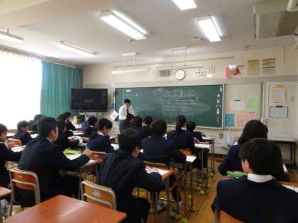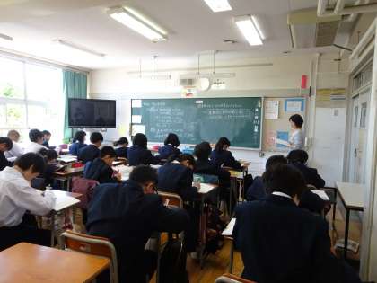 1年生の数学の授業の様子です。符号を使って反対の性質を表すことを学習していました。(遠藤)