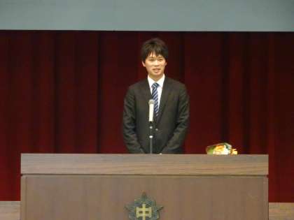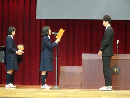 包括支援員の曽根さんです。バスケットボール部の外部指導員もしてくれていました。女子バスケットボール部の生徒たちが感謝の言葉を伝えました。(遠藤)