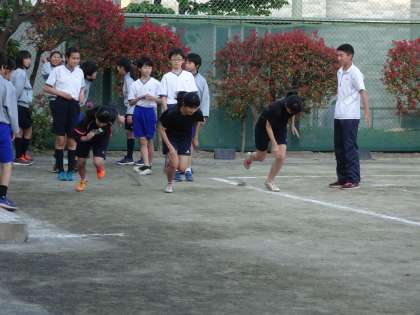 校庭ではサッカー部と陸上競技部が活動しています。1年生も入部し、どの部も活気がありますね。(遠藤)