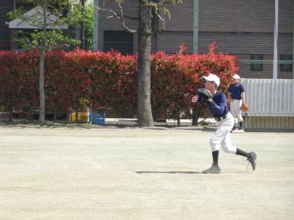 校庭では野球部が活動中です。内野のボール回しをしていました。ボールを捕球したら、すばやく送球しましょう。(遠藤)