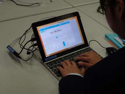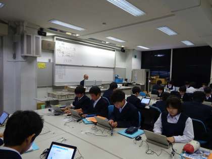 1年生の技術の授業の様子です。パソコン室でタイピングの練習をしていました。(遠藤)