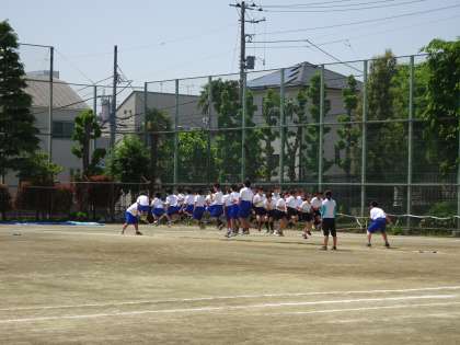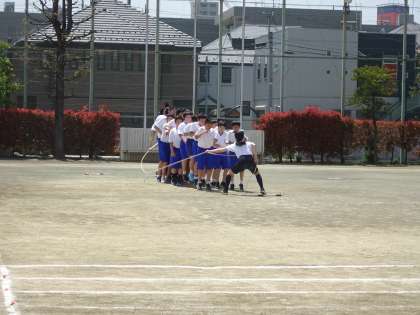 1年生の体育は校庭で大縄跳びの練習です。まだ始めたばかりなので2回くらいで失敗していました。運動会までしっかりと練習して、どのクラスよりも多く跳べるようにがんばりましょう。(遠藤)