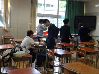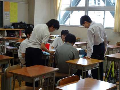今日は中間考査です。3年生は朝早くから教室で問題を出し合ったりして、お互いに確認し合っていました。(遠藤)