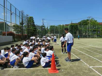 本日、2校時と3校時に1年生の第1回運動会学年練習を行いました。今日の練習内容やラジオ体操のやり方について体育委員から説明がありました。(小林)