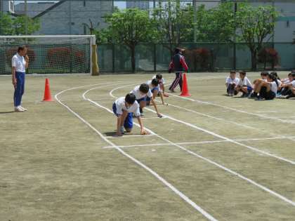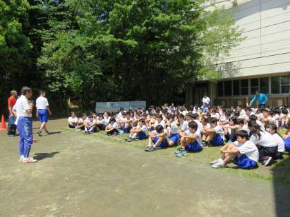 全員リレーの入退場について柴田先生から説明がありました。これから全員リレーが始まります。(小林)