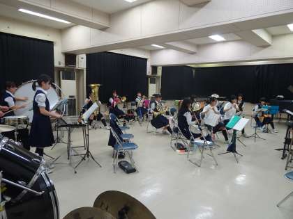 吹奏楽部が活動中です。運動会に向けて練習をしていました。(遠藤)