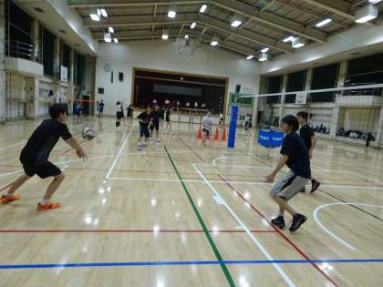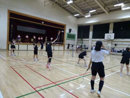 体育館では、バレーボール部とバドミントン部が活動しています。(遠藤)