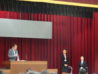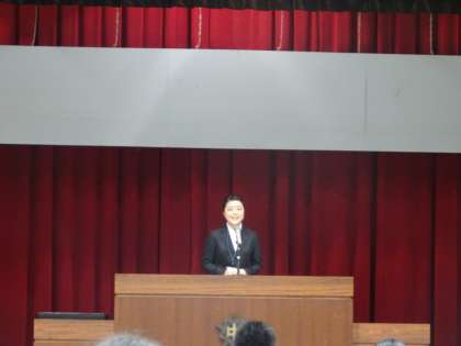 本日、全校朝会を行いました。教育実習生の紹介がありました。美術と家庭科の実習生です。今日から3週間、それぞれ3年D組と1年C組に入ります。(遠藤)