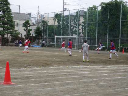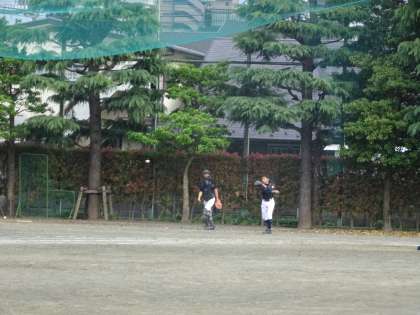 校庭では、野球部とサッカー部が活動しています。野球部はバント処理の練習、サッカー部はパス回しやシュート練習をしていました。(遠藤)