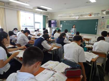 2年生の家庭科の授業です。幼児の体の発達について学習していました。(遠藤)
