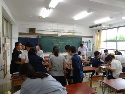 今日からイングリッシュタイムが始まりました。2年生を対象に水曜日の放課後に行われます。ALTのダニー先生と英語でのコミュニケーションを楽しんでいました。(遠藤)