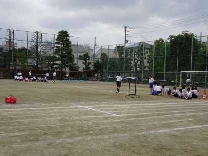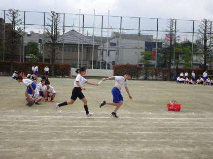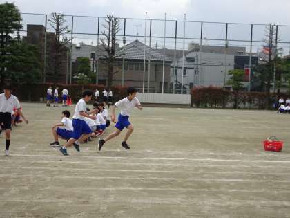 2年生の体育の授業です。校庭で全員リレーの練習をしていました。バトンパスがスムーズにできるように練習しましょう。(遠藤)