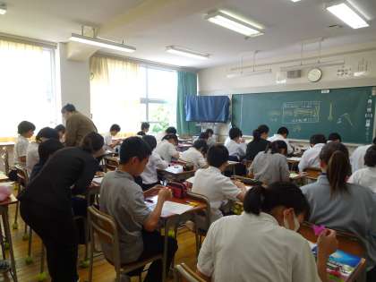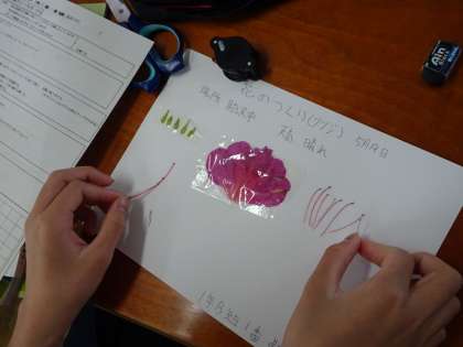 1年生の理科の授業です。花のつくりについて学習しています。ツツジの花を使って標本を作っていました。(遠藤)