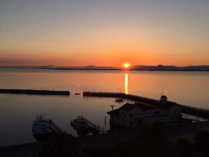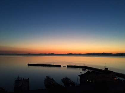 最後の日の朝、昨日を凌駕する素敵な夜明けがホテルの部屋の前に広がりました。3日目の想い出づくりに、暑い一日が始まりそうです。