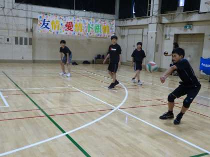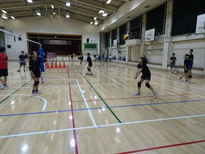 体育館ではバレーボール部が活動しています。男女ともレシーブ練習をしていました。(遠藤)
