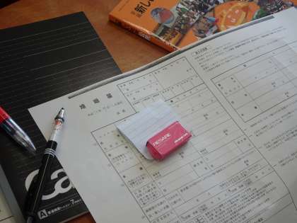 3年生の社会の授業です。結婚について学習していました。婚姻届けのコピーを用いて、実際に自分の名前を記入して書き方を学んでいます。(遠藤)