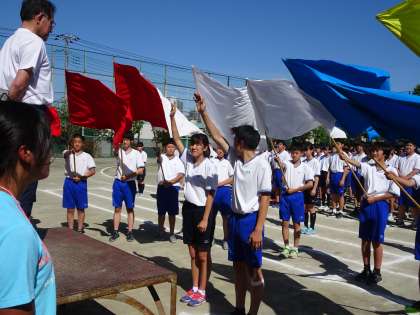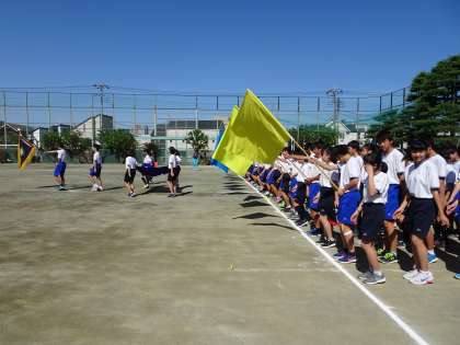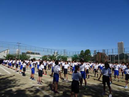 6校時、運動会の全校練習を行いました。入場行進から開会式、ラジオ体操まで流れを確認しました。暑い中、生徒たちはよくがんばっていました。(遠藤)