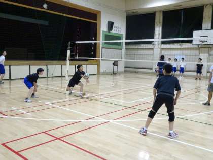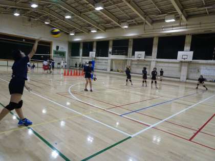体育館ではバレーボール部が活動しています。男子は3メンです。女子はサーブレシーブの練習をしていました。(遠藤)