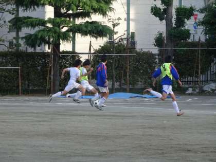 校庭ではサッカー部が活動しています。試合を想定した実戦練習をしていました。(遠藤)