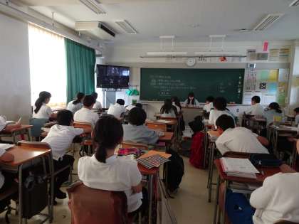 2年生の理科の授業です。映像を見ながら単体と化合物について学習していました。(遠藤)