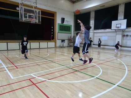 体育館ではバスケットボール部が活動していました。夏季大会も近く明日も練習試合なので、今日はゲーム形式の練習です。スクリーンや合わせの動きを使って攻撃していきましょう。(遠藤)