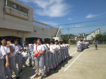 5時間目は学年種目のむかで競争の練習をしています。掛け声を工夫して、足並みをそろえていました。
