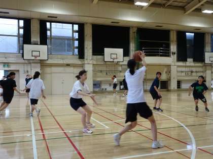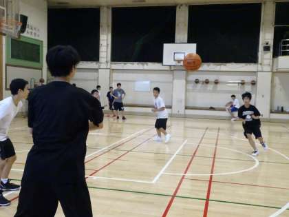 体育館ではバスケットボール部が活動しています。3対3をやっていました。コートを広く使ってパスを回しましょう。(遠藤)