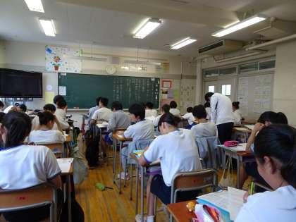 3年生の国語の授業の様子です。「握手」についての感想文を書いていました。(遠藤)
