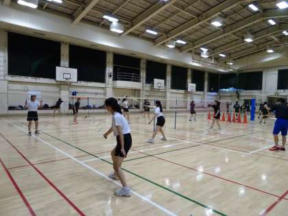 体育館ではバドミントン部が活動しています。プッシュの練習をしていました。(遠藤)
