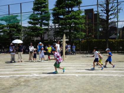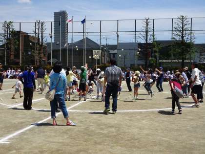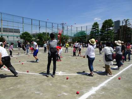 午後の競技が始まりました。PTAと地域の方、小学生以下の子どもたちによる玉入れとスプーンレースです。玉入れは1勝1敗で引き分けでした。(遠藤)
