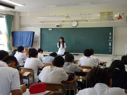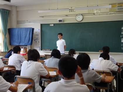 1年生の国語の授業ではスピーチを行っていました。自分のお気に入りのものや尊敬する人について話していました。(遠藤)