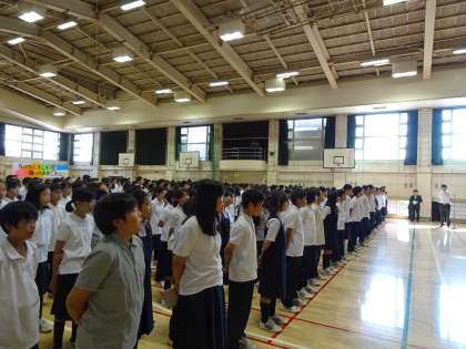 本日、全校朝会を行いました。運動会も終わり今週の金曜日から期末考査が始まります。気持ちをきちんと切り替えて落ち着いた学校生活を送り、一つ一つの授業を大切にして期末考査に備えるようにしましょう。(遠藤)