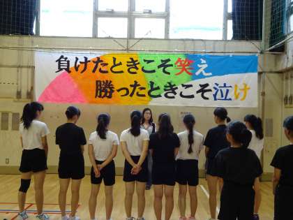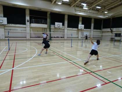 午前中の体育館ではバドミントン部が活動しています。試合に出場するメンバーだけの練習です。試合形式の練習で最終調整していました。明日はがんばってください。(遠藤)