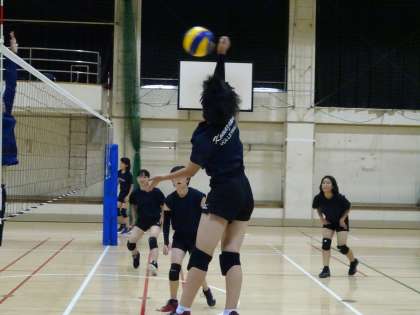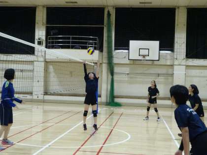 午後の体育館では女子バレーボール部が活動しています。サーブレシーブからトス、スパイクまでの流れを何度も確認していました。明日は公式戦です。がんばってください。(遠藤)
