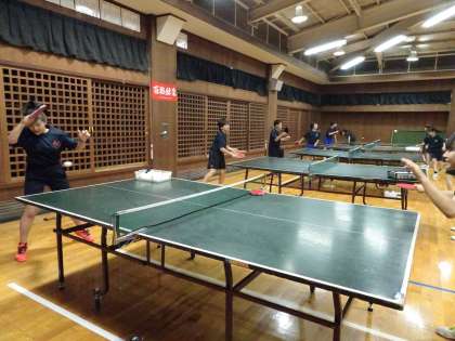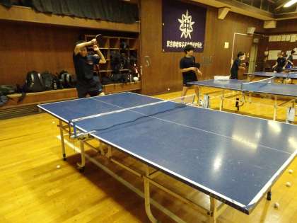卓球部が格技室で活動しています。今日はドラブロの練習をしていました。公式戦が近いので練習にも熱が入っていますね。(遠藤)