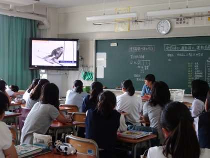 2年生の体育女子の授業の様子です。体力テストの記入のあと、日本で開催されたオリンピック・パラリンピックの歴史について映像で学習していました。(遠藤)