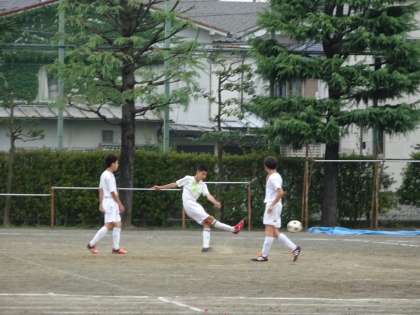 校庭ではサッカー部が活動しています。今日はシュート練習をしていました。(遠藤)
