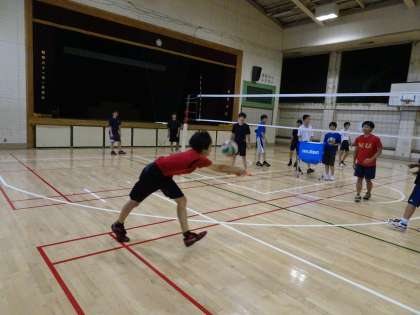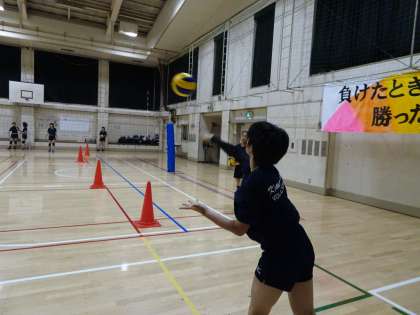 体育館ではバレーボール部が活動しています。男子は3メンでレシーブ練習、女子はサーブ練習をしていました。(遠藤)