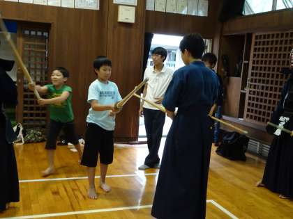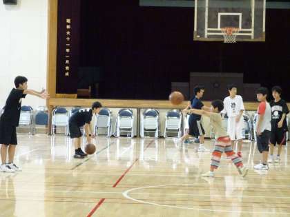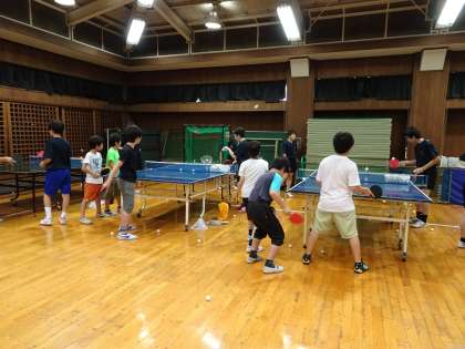 部活動体験の様子です。実際に道具に触れ、先輩たちといっしょにプレーして楽しんでいます。(遠藤)