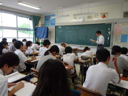 1年生の数学の授業の様子です。今日は1次式の項と係数について学習していました。(遠藤)