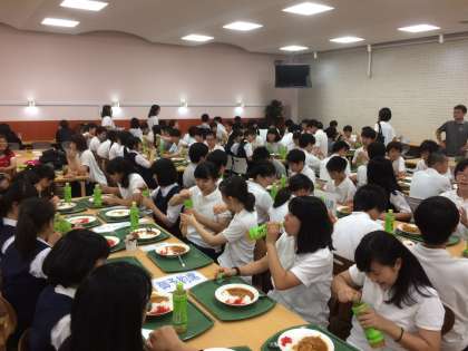 授業の後は、AB組とCD組に分かれて学食体験と施設見学を行いました。