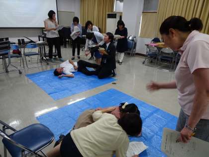 本日、アナフィラキシーシミュレーション研修会を行いました。アナフィラキシーショックについて養護教諭の四戸岸先生から説明を受けた後、シミュレーション演習をしました。(遠藤)
