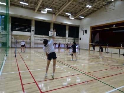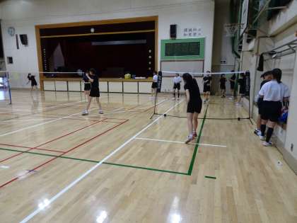 体育館ではバドミントン部が活動しています。夏季大会でさらに上に勝ち進むために集中して練習に取り組んでいます。(遠藤)