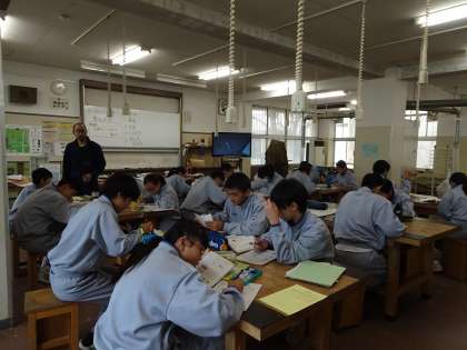2年生の技術の授業では電気用図記号について学習しています。回路図を読んだり書いたりするために記号をきちんと覚えましょう。(遠藤)